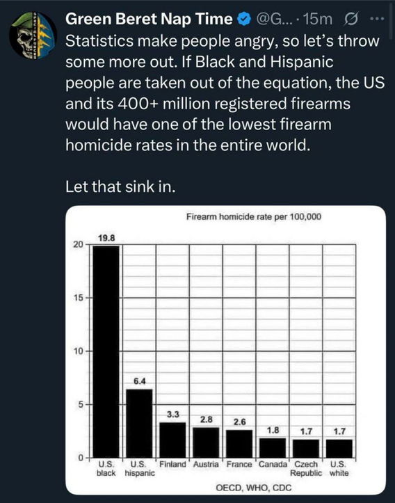 Es gibt einen starken Bezug zwischen us black und us white. Aber zB die Afghanen haben auch eine mehrfach höhere Mordrate als Weiße.