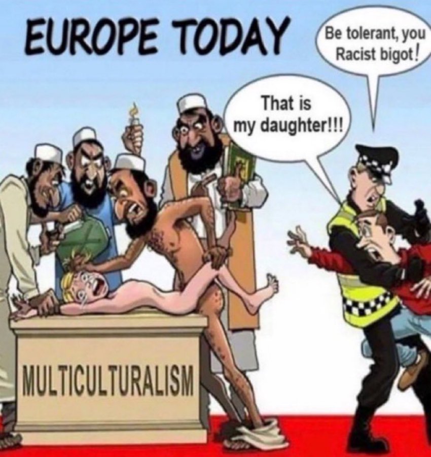 Hier interessantes Bild von aggressiven Afrikanern und Muslimen: