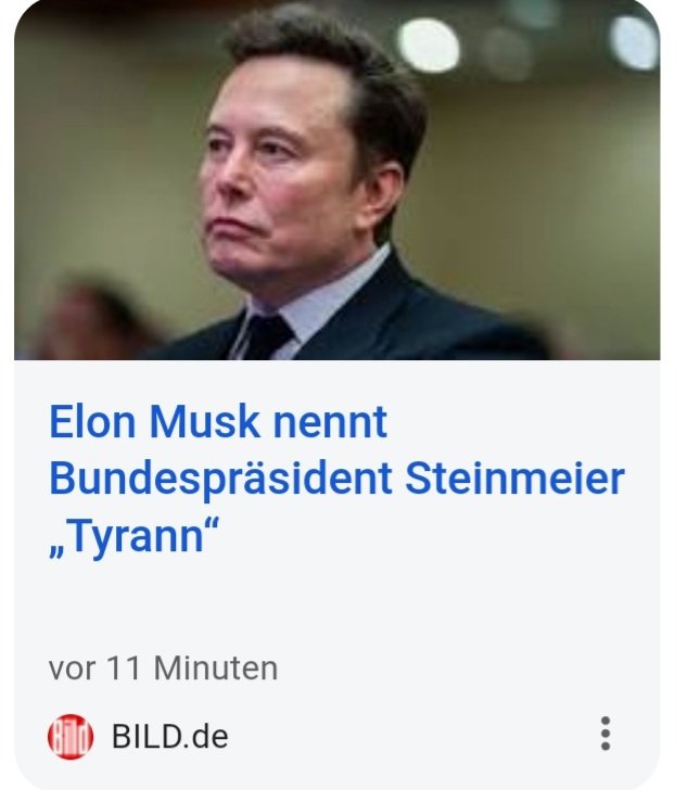 Ich halte die Aussagen von Musk für keine zufällige Meinungsäußerung sondern für ein mit Trump abgesprochenes Gegengewicht zur umfassenden medialen Meinungsmanipulation der US - Globalisten in Deutschland.