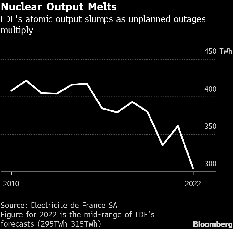 Die Franzosen haben derzeit erhebliche Probleme mit ihren Atomkraftwerken, weswegen in diesem Jahr die Stromproduktion aus diesen so niedrig sein wird es vor drei Jahrzehnten war.