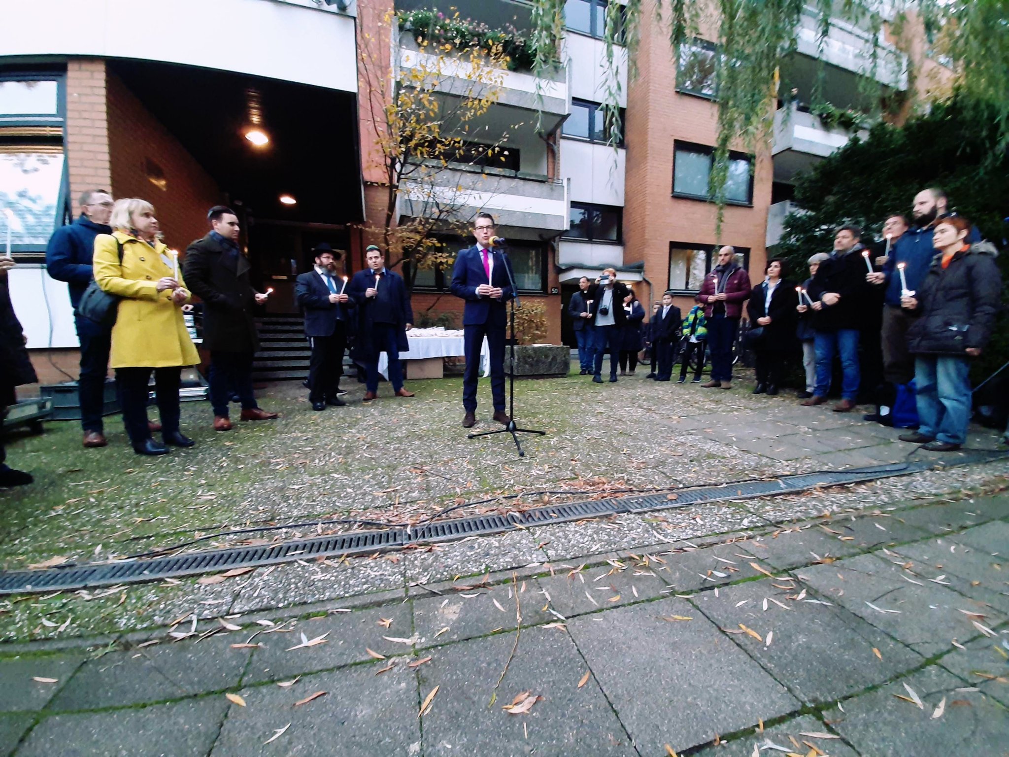 Robert Habeck und ich waren heute gemeinsam beim Jüdischen Zentrum Chabad Lubawitsch. Gemeinsam versammelten wir uns vor der Synagoge, um dieser symbolisch Schutz zu bieten. Gesicht und Haltung zeigen gegen jeden Rassismus und Antisemitismus! (der Deutschen in Deutschland)