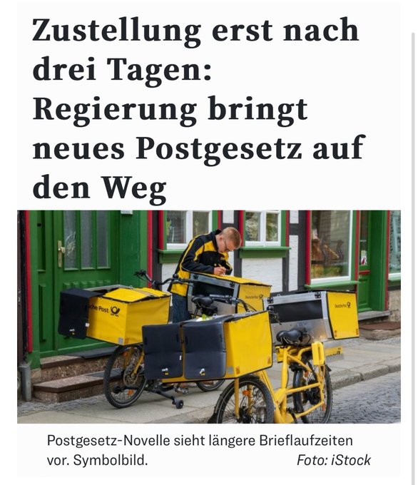 Die Netzabdeckung hat Dritte-Welt-Standard und wie in einem Entwicklungsland soll jetzt die Post erst nach 3 Tagen zugestellt werden.