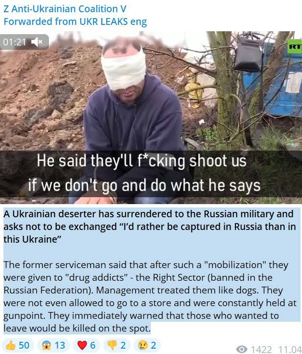 Es gibt viele Berichte von Gefangenen, aus unterschiedlichen Einheiten, die immer dasselbe berichten. Sie werden mit Waffengewalt zur Front gezwungen.