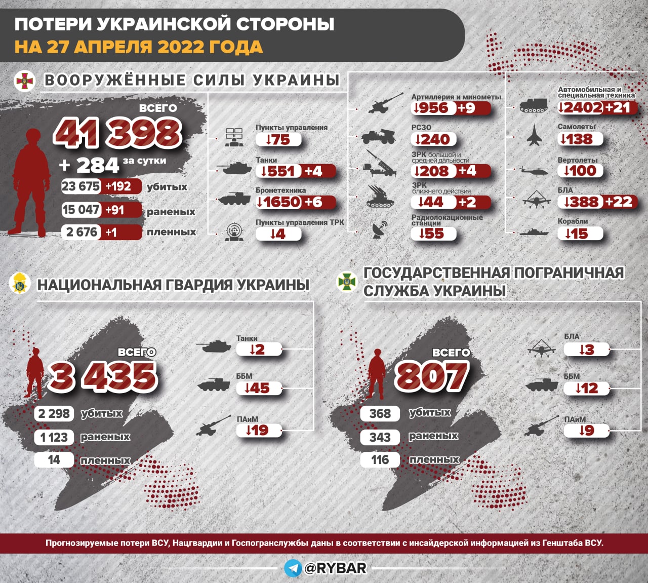 Verlustmeldungen der ukrainischen Armee am 27.04.2022.
